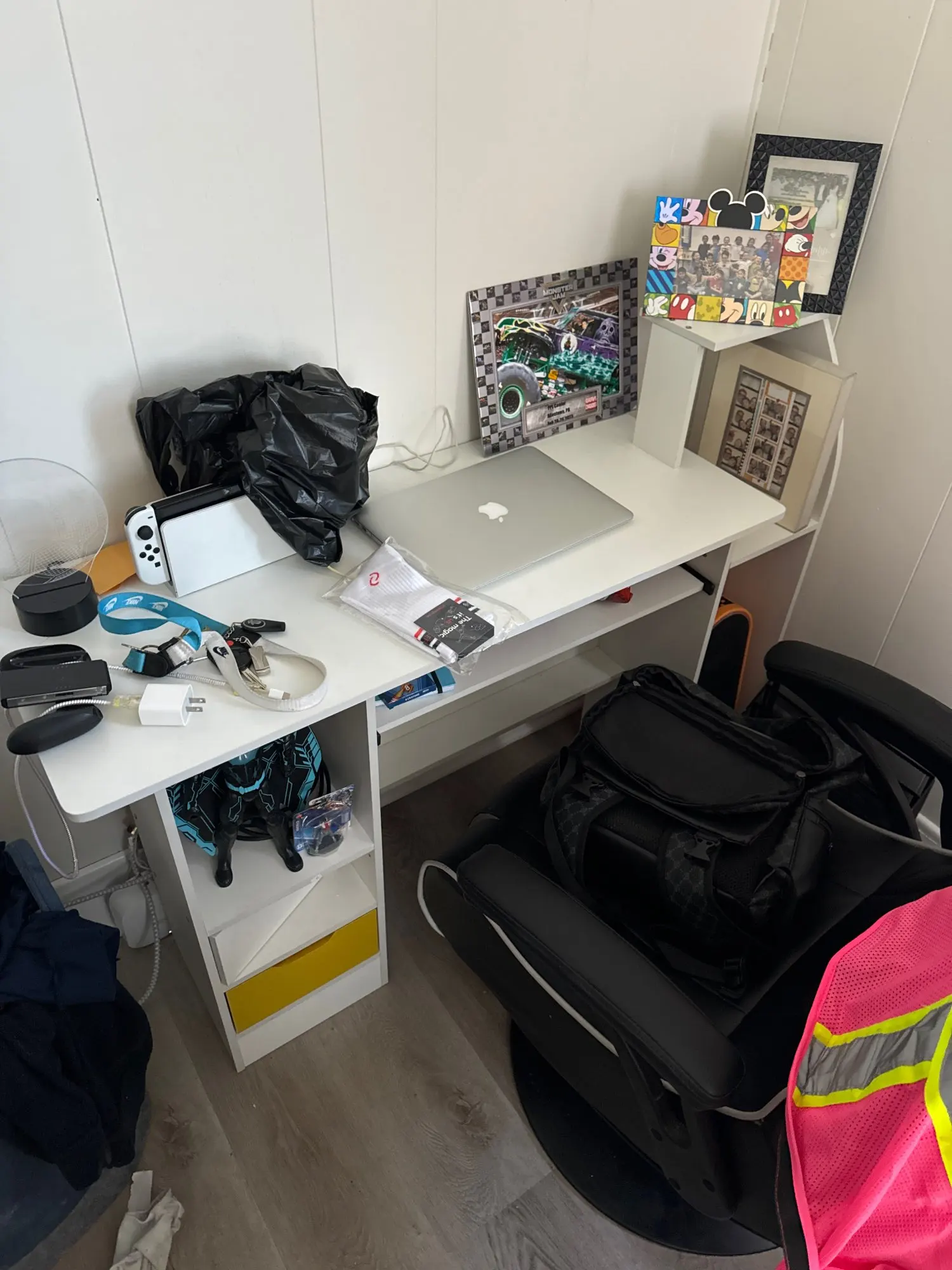 Damn cute Study desk! Small & simple! Perfect for kids & for grown ups you have to throw away the keyboard tray! Wish it hade 6inch more height!! All screws bites came in single pouch! Worried something might have missed, but I was wrong!! All items were perfect..